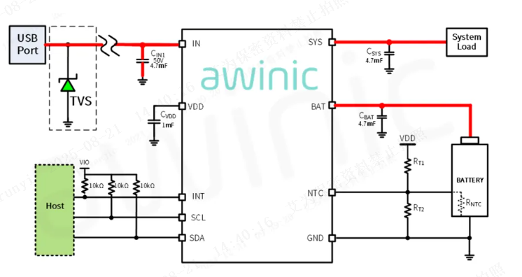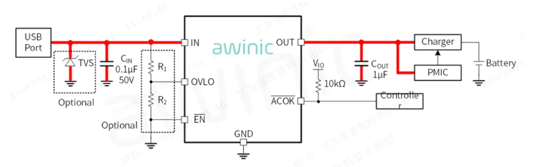 Figure 8: Application Schematic of Awinic’s Charging Port OVP