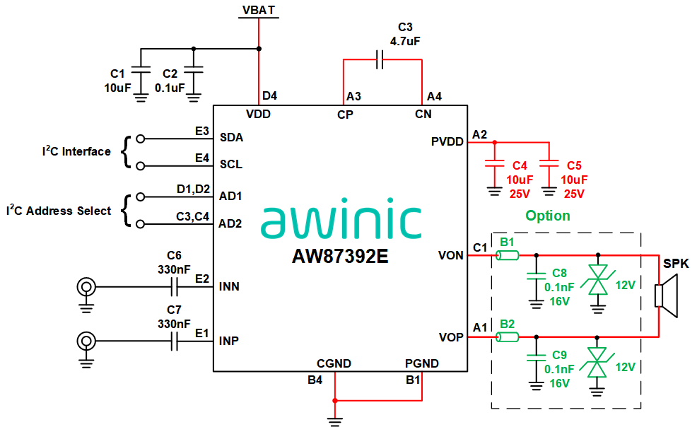 AW87392E built-in over current protection, over temperature protection and short circuit protection function, effectively protect the chip. AW87392E features small FCQFN 2.5mmX2.0mmX0.55mm-16L package.