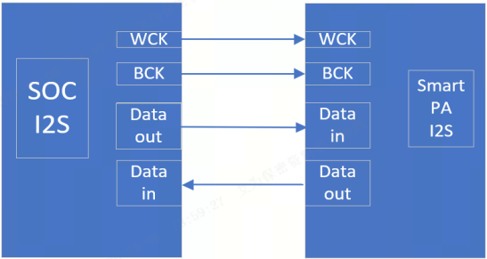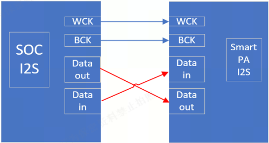 1、这种异常线序连接下,PA无法通过自身的Data in收到平台Data out 发出的I2S音频数据,导致无声。