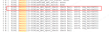 A:AW883xx系列PA在start过程中出现aw_dev_sysst_check: check fail错误log,如下图所示: